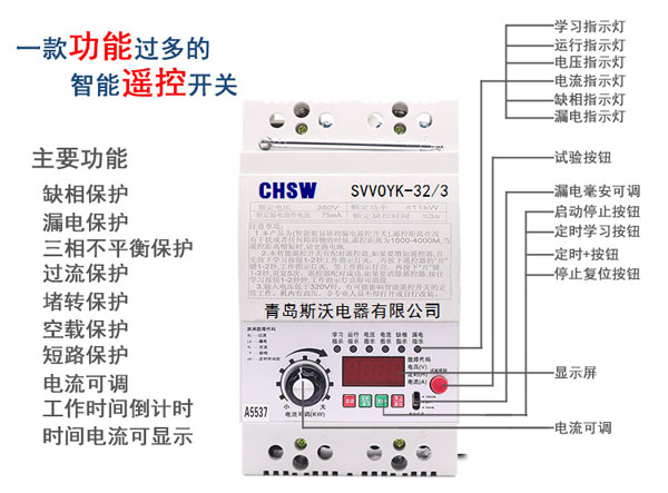 水泵遠(yuǎn)程遙控器11KW三相遙控開關(guān)數(shù)顯 缺相漏電保護(hù)